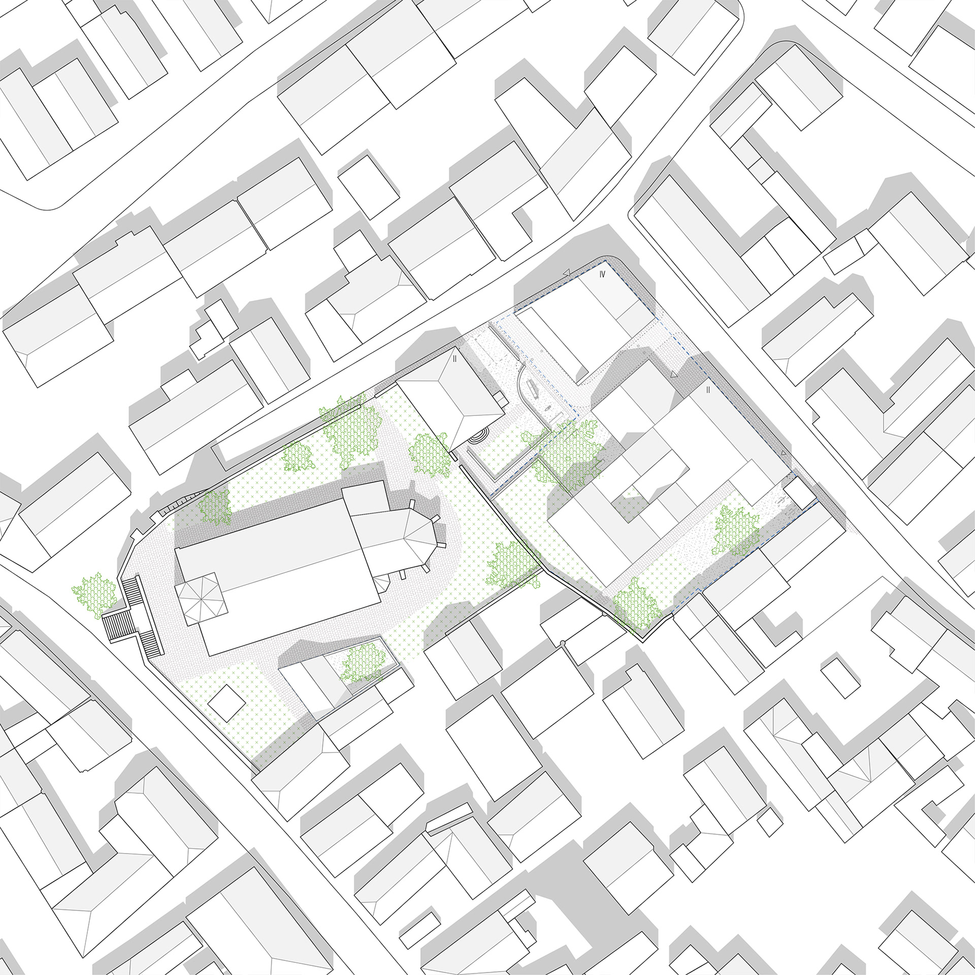 Teilnahme am nicht offenen, anonymen Realisierungswettbewerb "Areal rund um die Kirche", Alt Knielingen Karlsruhe 2020.
